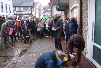 Beginn der Verlegung der Steine durch Gunter Demnig